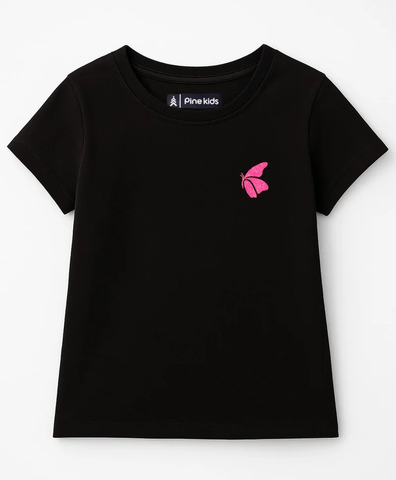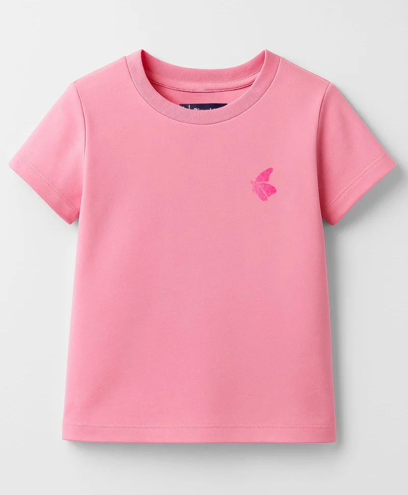 Pine Kids Cotton Knit Half Sleeves T-Shirt With Butterfly Print - Pink