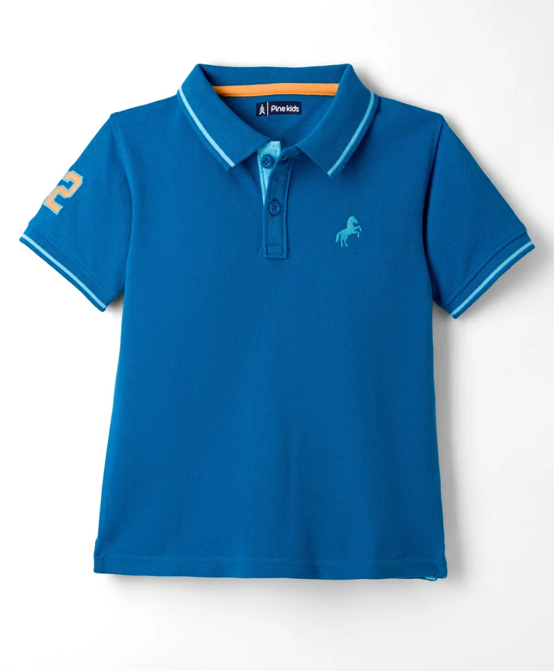 Pine Kids Cotton Knit Half Sleeves T-Shirt with Logo Print - Blue