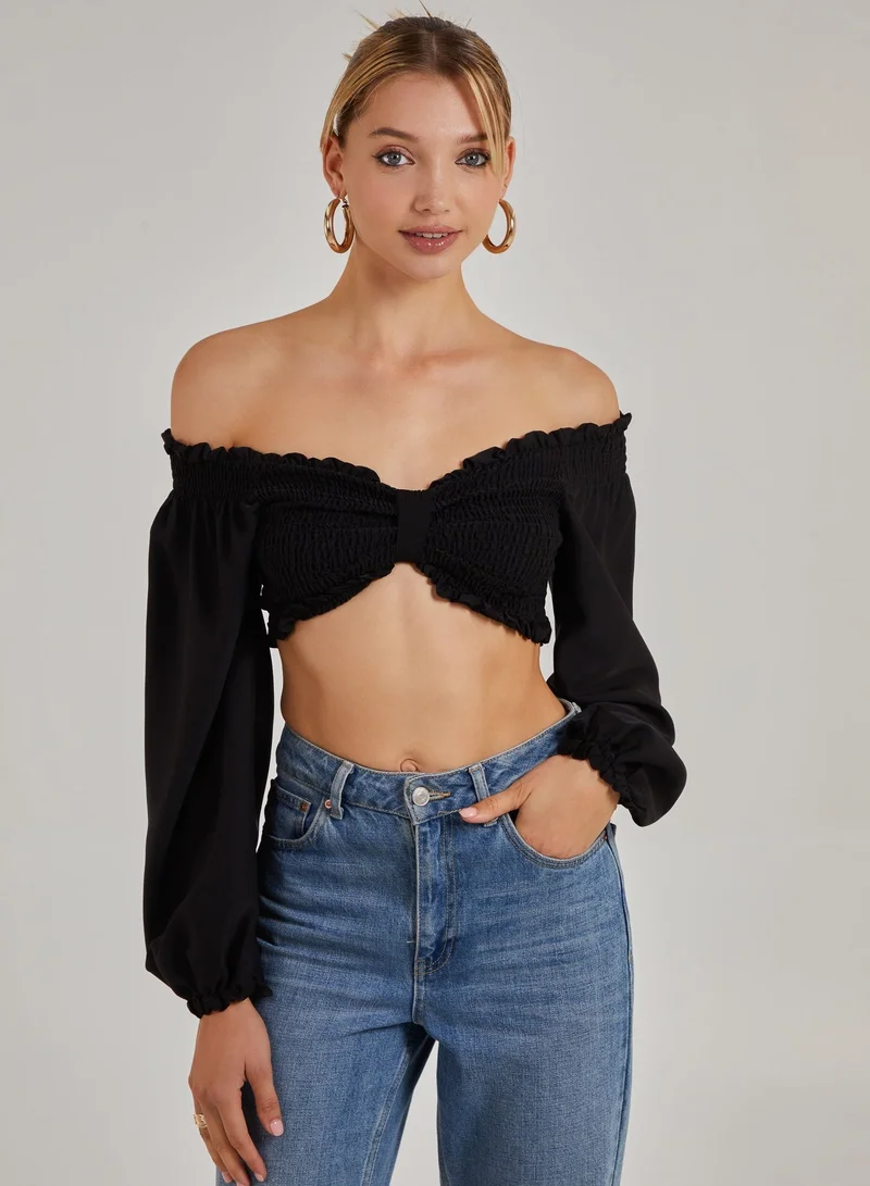 Bardot Mesh Long Sleeve Top