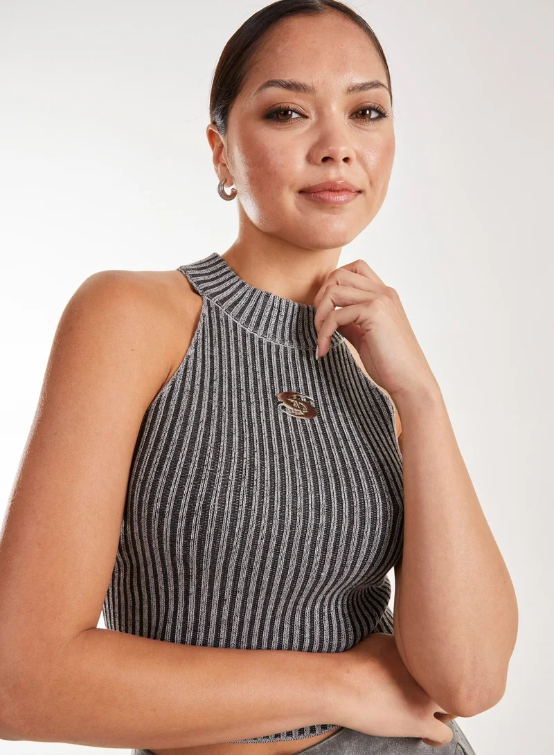 Rib High Neck Sleeveless Crop Top
