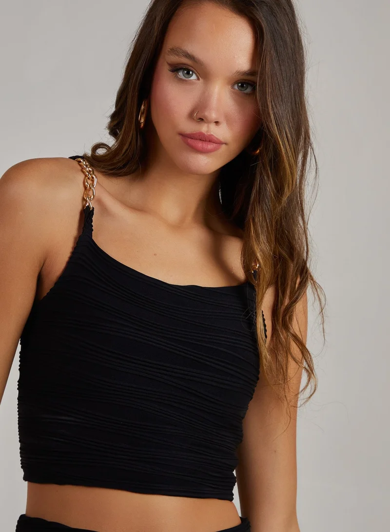 Swirl Rib Gold Chain Top