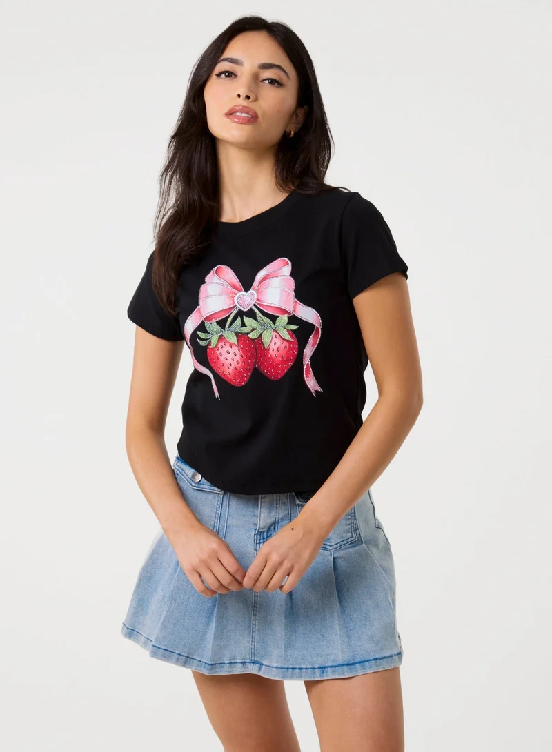 Diamante Strawberry Bow Tee