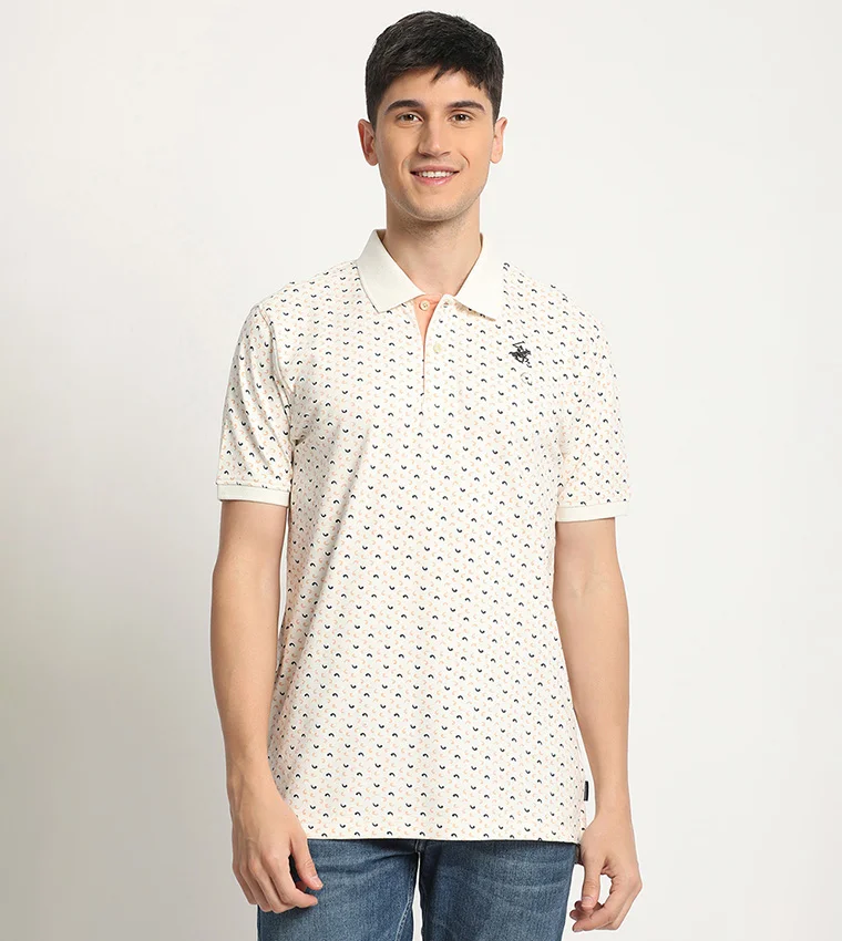 Men's Sand Beige Cuboid-Stripe Polo T-Shirt