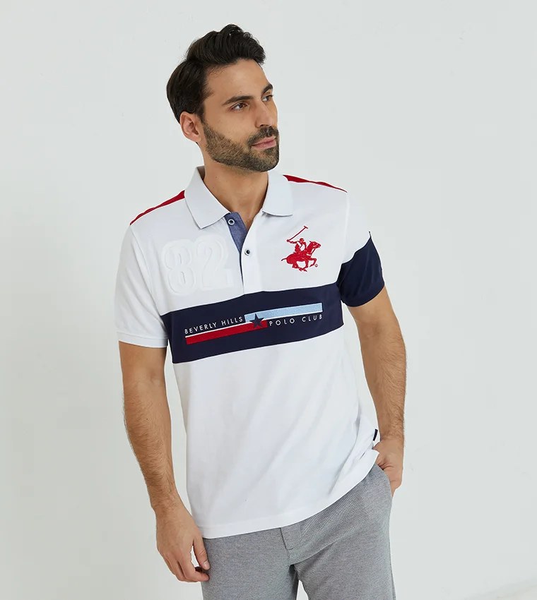 Beverly Hills Polo Club Colorblock Pattern Classic Collar Polo Shirt