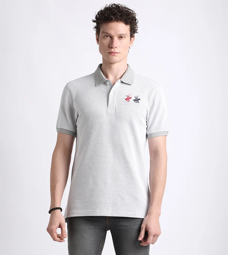 Men's Ash Grey Abstract-Textured Polo T-Shirt