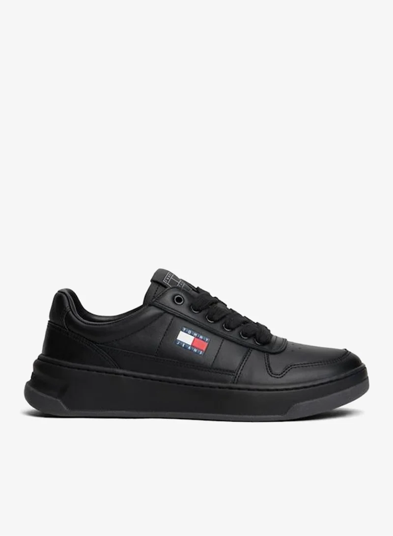 Men Black Elastic Lace Pull On Sneakers