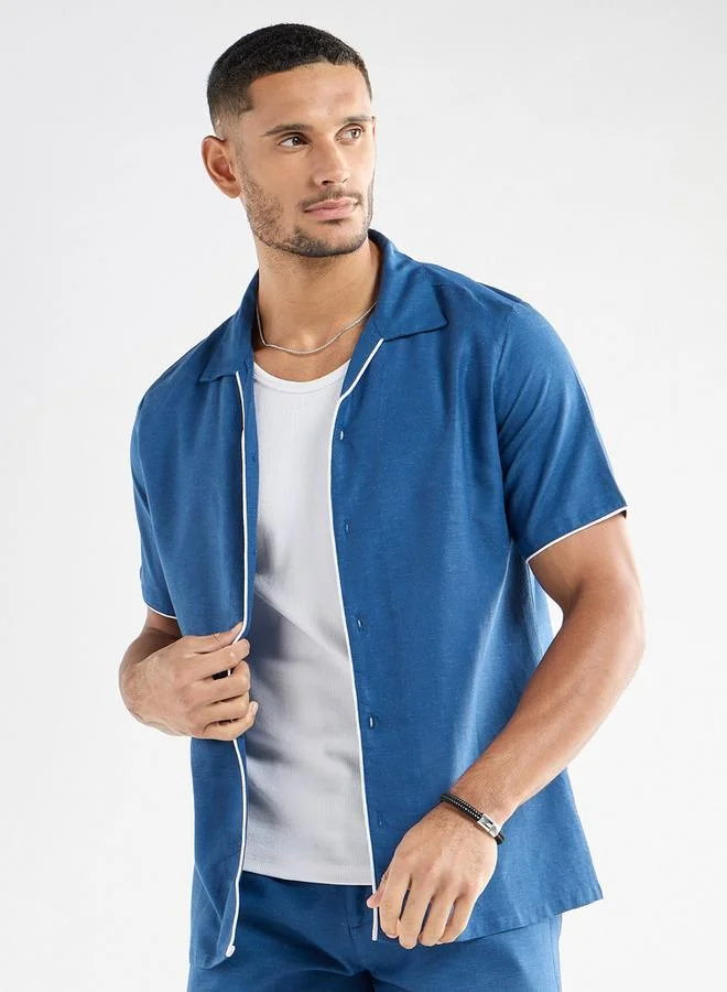 Regular Fit Waffle Textured Shirt with Camp Collar and Short Sleeves