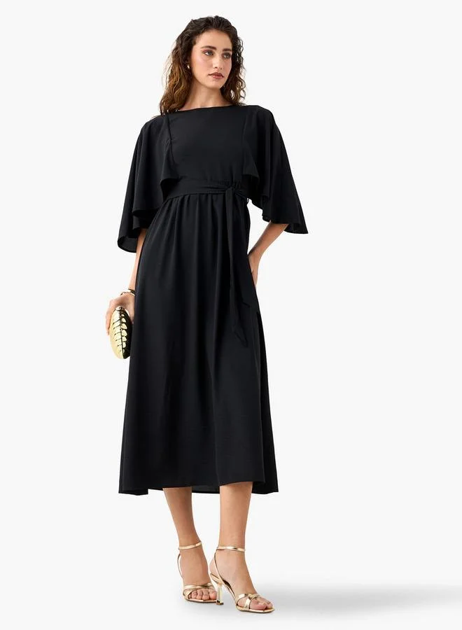 Styli Floral Print Tie Up Neck A-Line Midi Dress