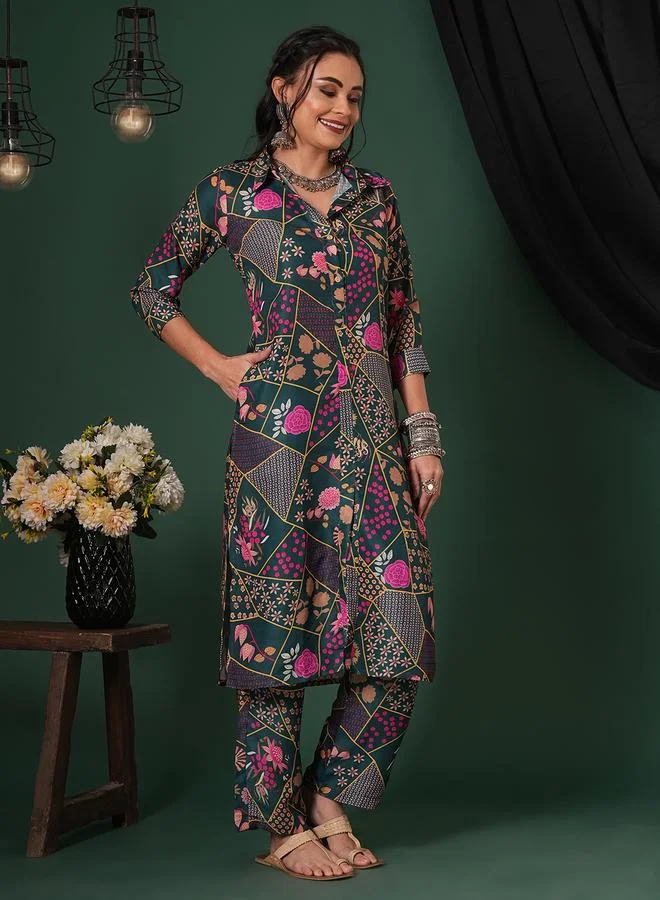 Globus Women Black Sequined Kurta with Pant and Dupatta Set
