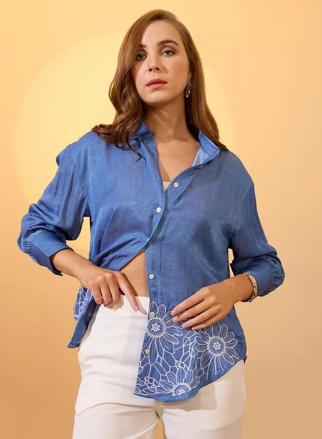 2Xtremz Floral Applique T-shirt with Crew Neck