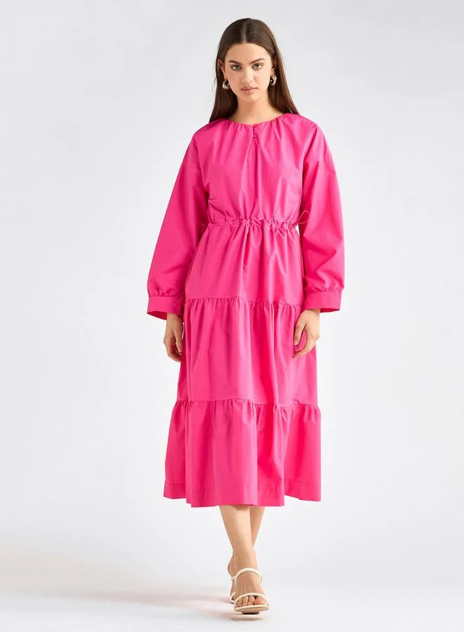 Styli Satin Ruffle Detail Bodycon Maxi Dress
