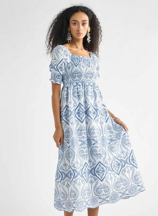 Take Two Embroidered Waist Tassel Strap A-Line Maxi Dress