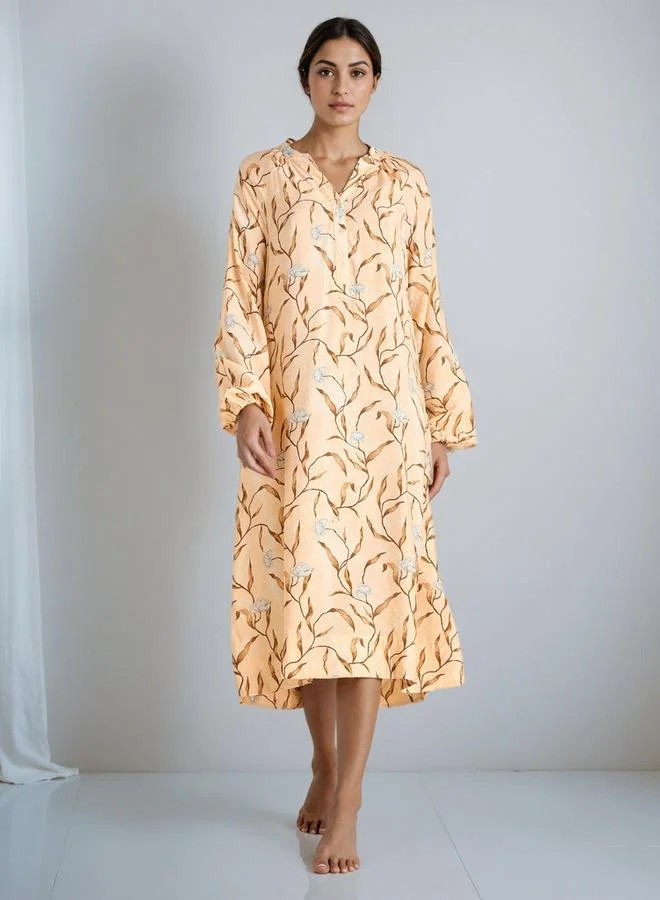 Women's Abstract Print Crew Neck Top and High Rise Midi Skirt Set, Attached Lining, Ruching Detail, Full Sleeve Top with Side Zip Closure