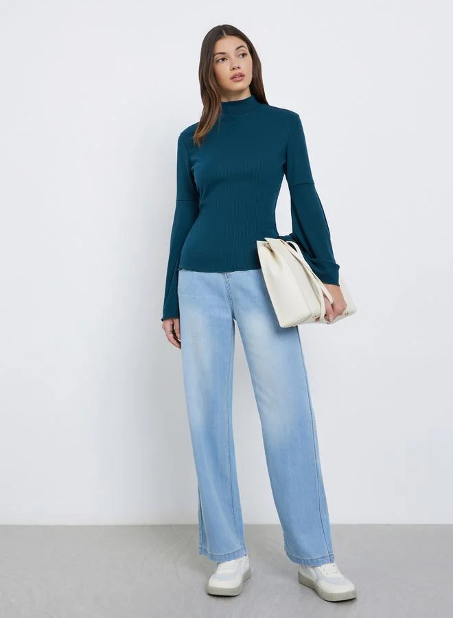 Blue Mid Rise Straight Leg Jeans