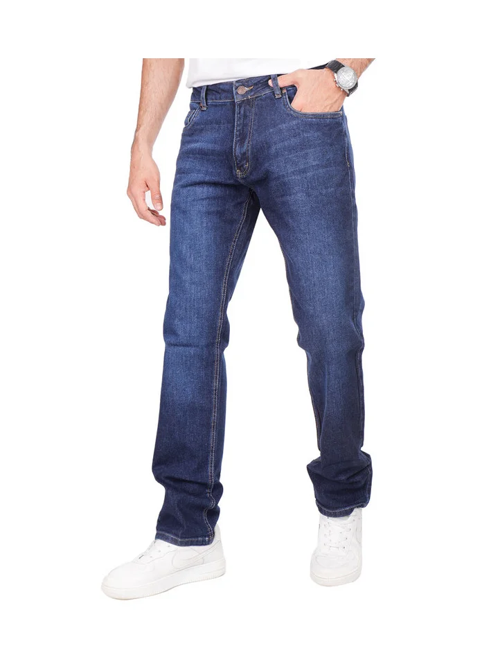 Men's Dark Blue Straight Fit Twill Jeans