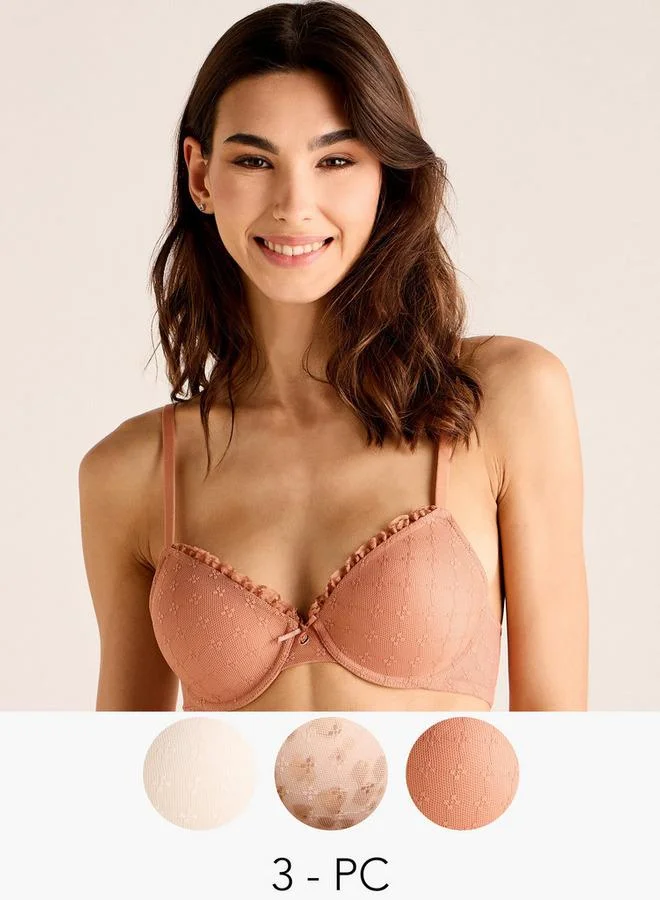 Set of 3 - Lace Detailed Plunge Bra with Hook and Eye Closure