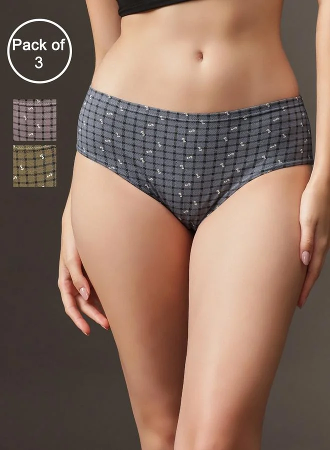 Pack of 3 - Mid Waist Printed Hipster Panties with Inner Elastic