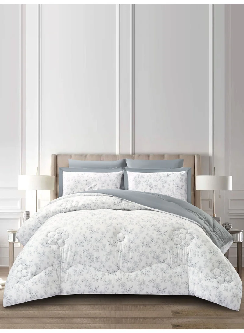 Cotton 6-Piece King Comforter Bedding Set Fits 200x200 cm – 350 GSM Filling with Fitted Sheet, Pillow Shams & Pillowcases, Stylish Printed Elegance