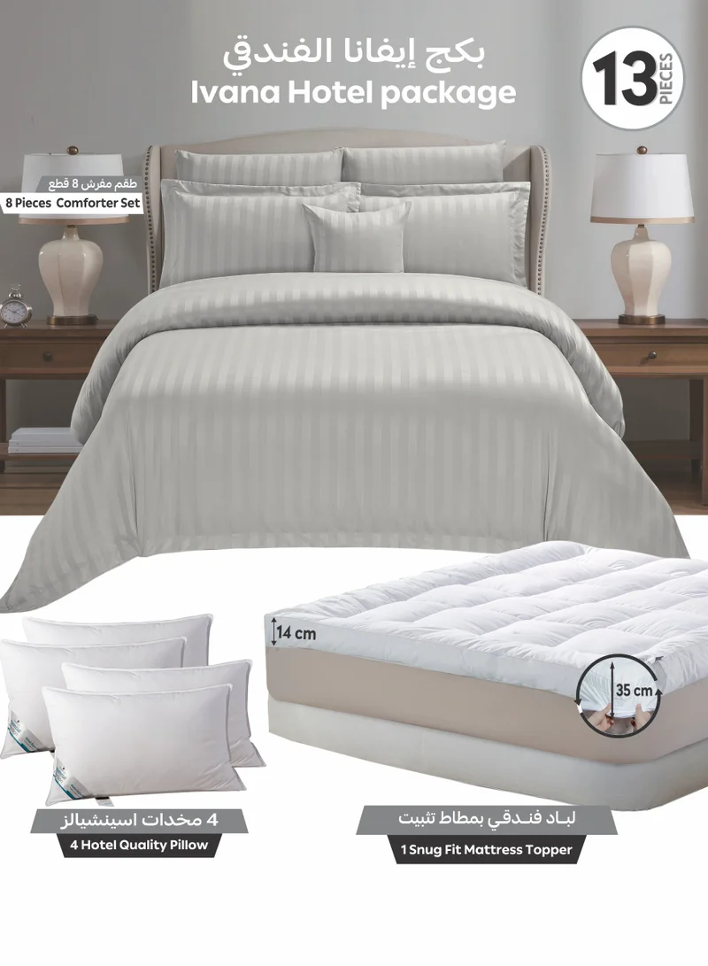 Hotel Style Premium Package 7 Pcs Duvet Set Beige + Duvet Insert +Mattress Topper+4 Pillows King