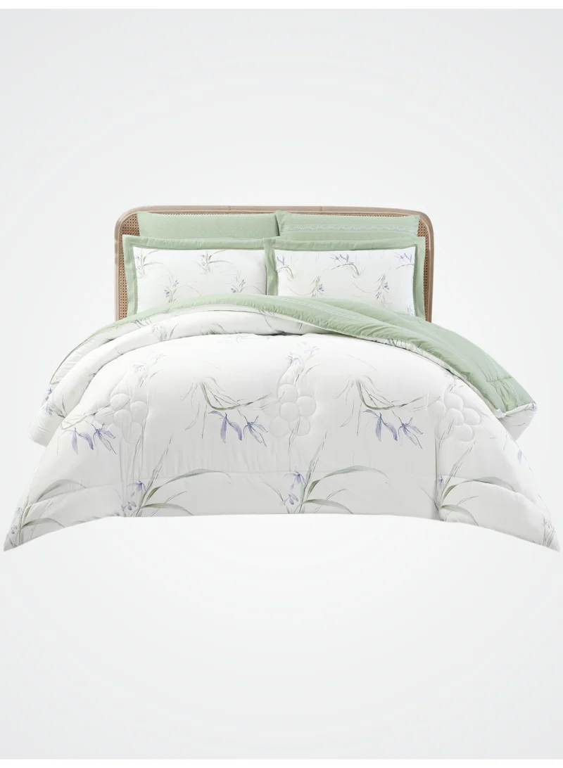 Comforter Set 6-Pcs Double Size All Season Reversible Microfiber Printed Comforter Bedding Set With Super Soft Down Alternative Filling Snow Drift 260x240 cm