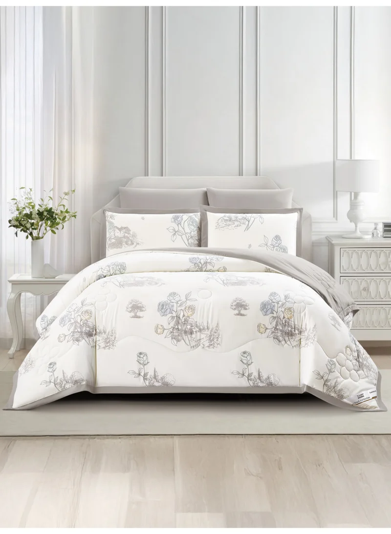 Printed Comforter Set 6-Pcs King Size All Season Decorated Reversible Double Bed Comforter Set Fits (200 X 200 Cm)With Super-Soft Down Alterntaive Filing,White