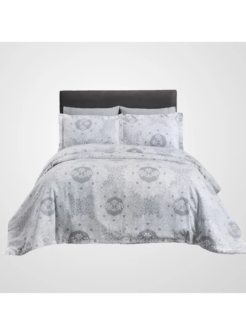 4-Piece Duvet Cover Set Without Filler Cotton Grey/White Single Size