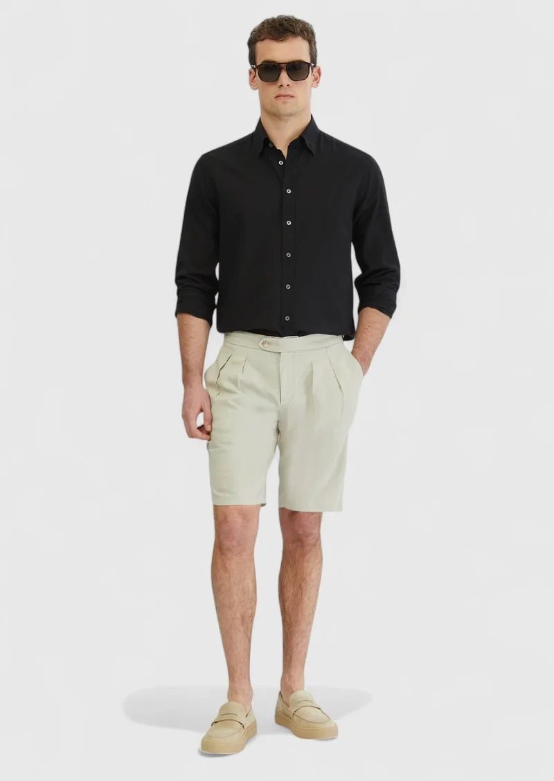 Ecru Weaving Jogging Fit Casual Linen Blended Bermuda