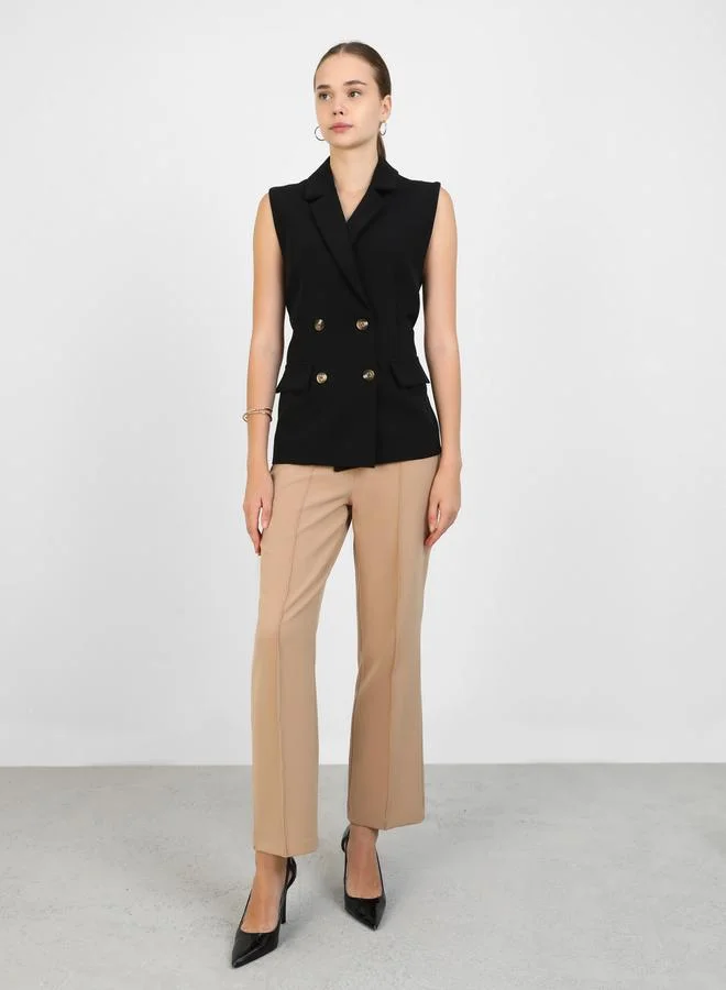 Refka by modanisa Solid Mid Rise Regular Fit Trousers with Pintuck Detail