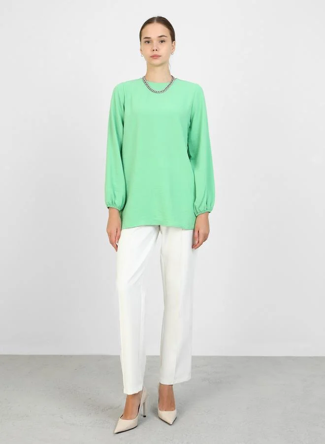 Refka by modanisa Green Solid Round Neck Longline Blouse