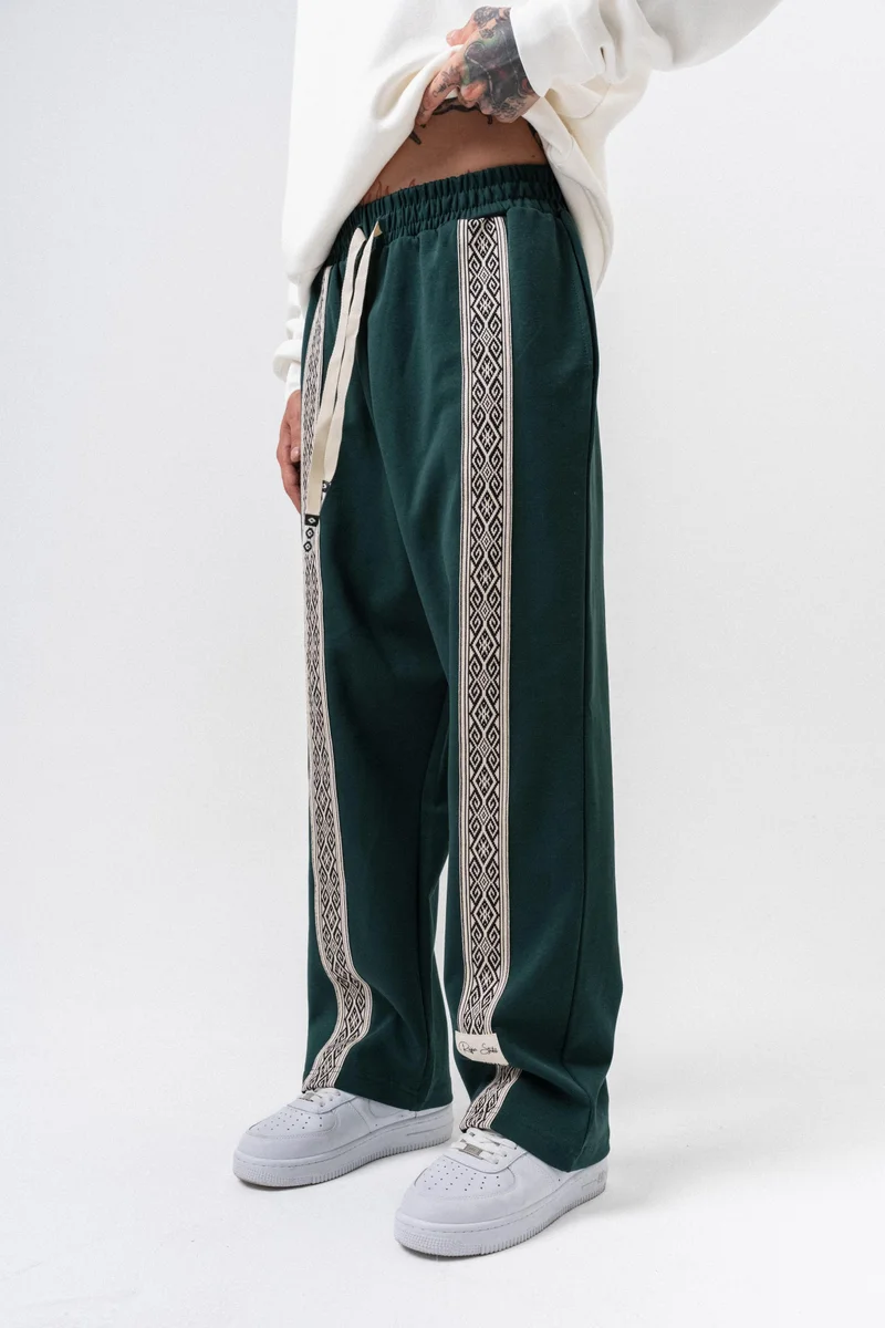 Men’s Ethnic Striped Winter Doubleface Baggy Sweatpants Khaki Green