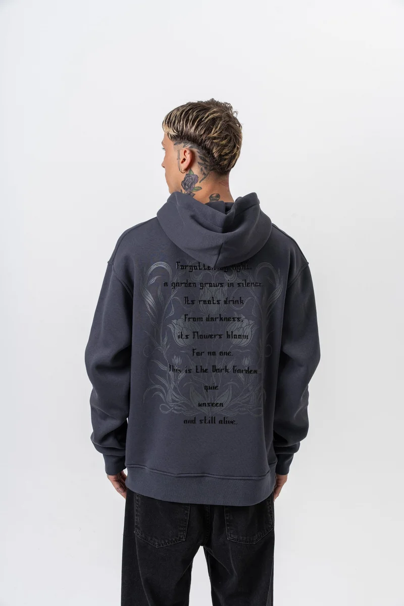 Men's Garden Printed Hooded Oversize Hoodie Smoke Grey (Füme)