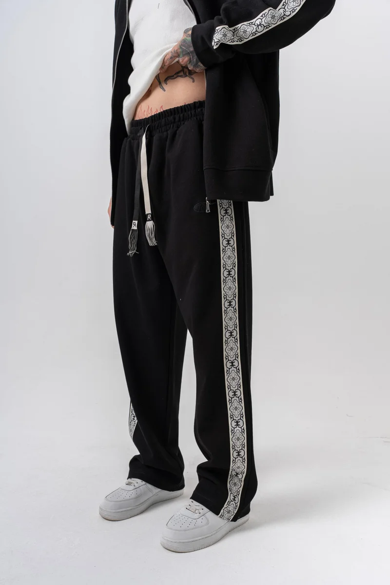 Men’s Damask Striped Winter Doubleface Baggy Sweatpants Black