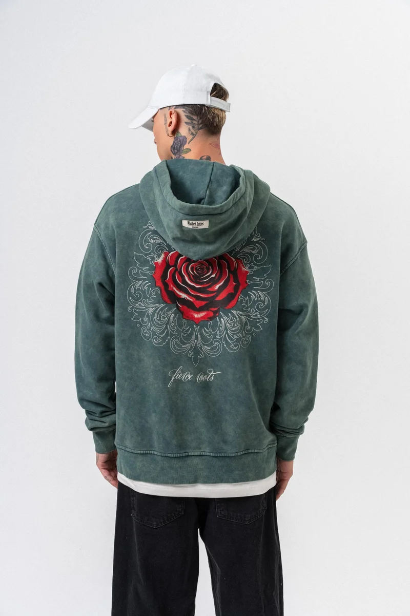 Men's Fierce Printed Washed Hooded Oversize Hoodie Green