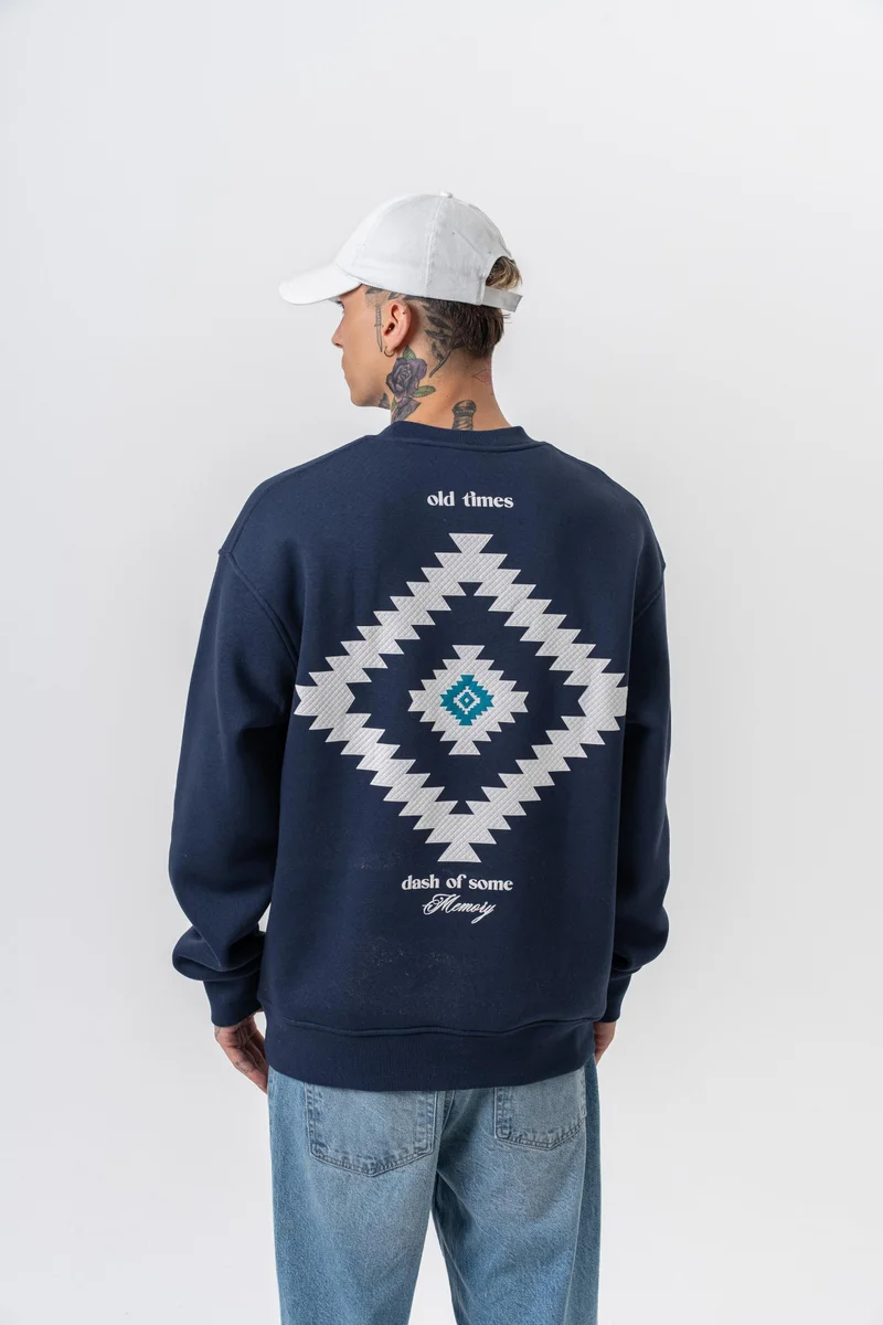 Men’s Memory Printed Crewneck Oversize Sweatshirt Navy Blue