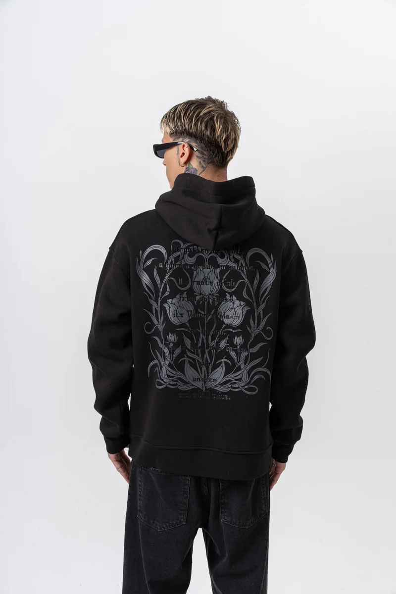 Men's Garden Printed Hooded Oversize Hoodie Black