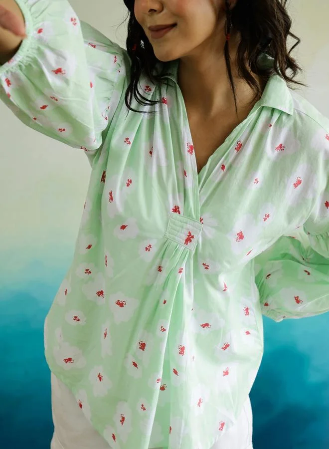 sanskrutihomes All-Over Floral Print Extended Sleeves Cotton Top