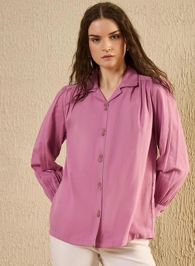 Sanskrutihomes Balloon Sleeve Buttoned Mandarin Collar Shirt
