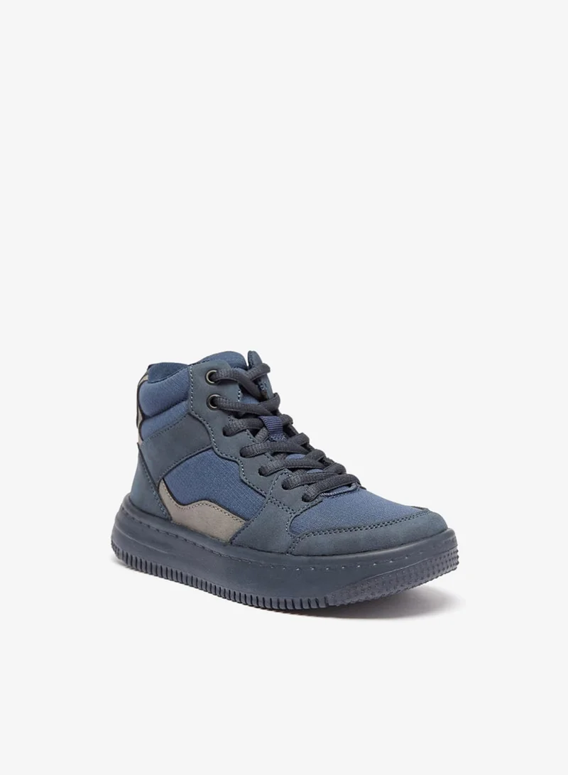 Boys Panelled Ankle Sneakers With Hook And Loop Closure