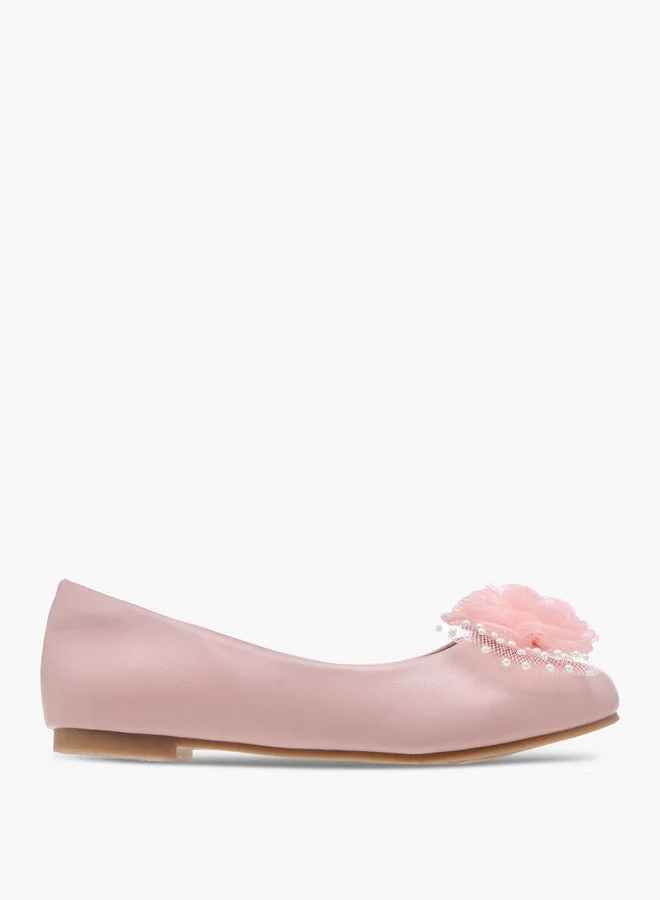 Pearl Embellished Ballerina Shoes with Flower Applique