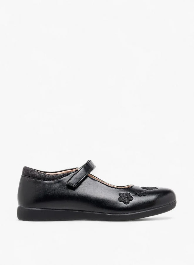 Girls Floral Embroidered Mary Jane School Shoes with Hook and Loop Closure