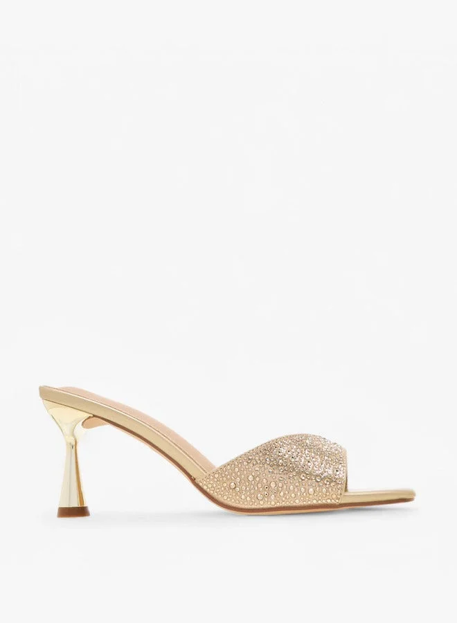 Womens Embellished Slip-On Sandals With Kitten Heels