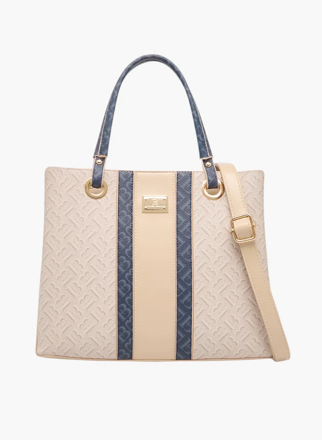 Womens Monogram Detail Tote Bag With Detachable Strap And Snap Button Closure