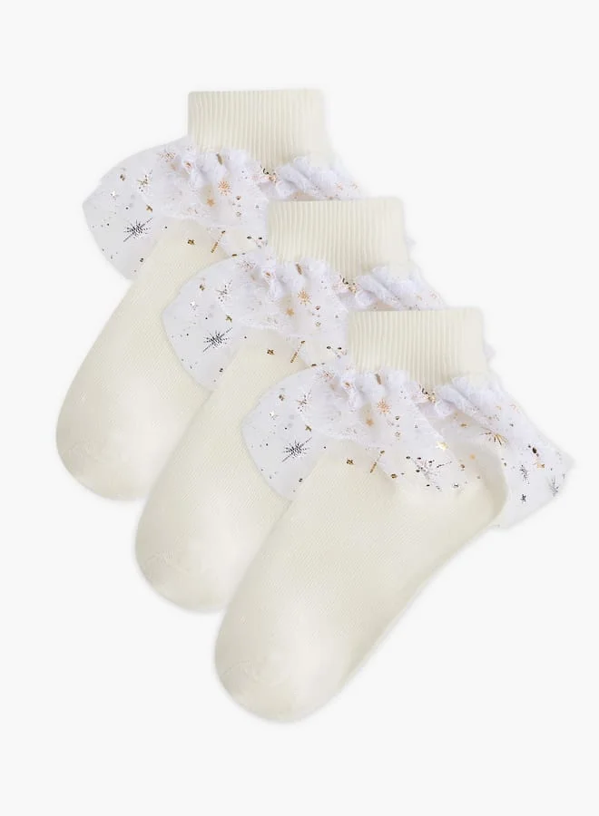 Girls Ribbed Ankle Length Socks with Frill Detail - Set of 3