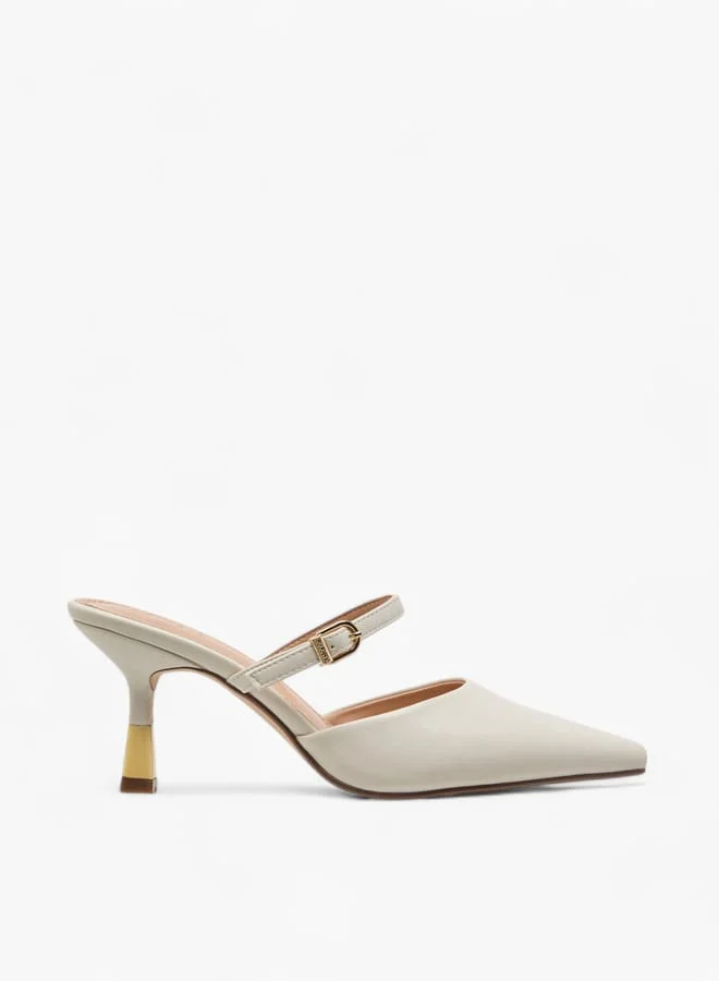Women's Pointed Toe Sandals with Kitten Heels and Pin Buckle Closure