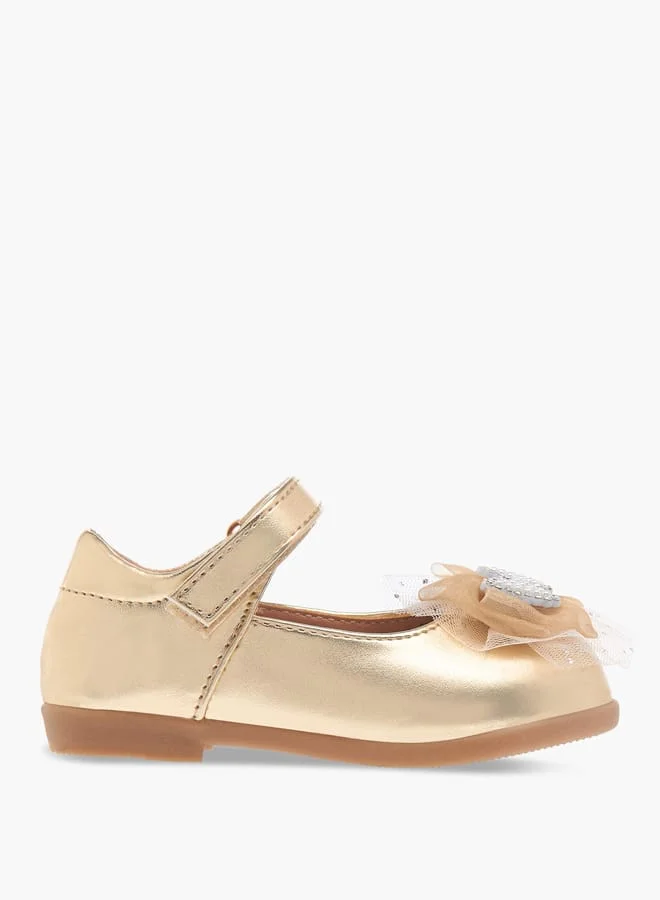Girls Floral Bella Bow Embellished Mary Jane Shoes with Hook and Loop Closure