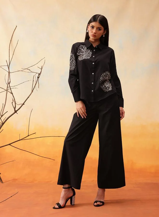 Black Sequined Embellished Shirt and Trousers Co-Ords