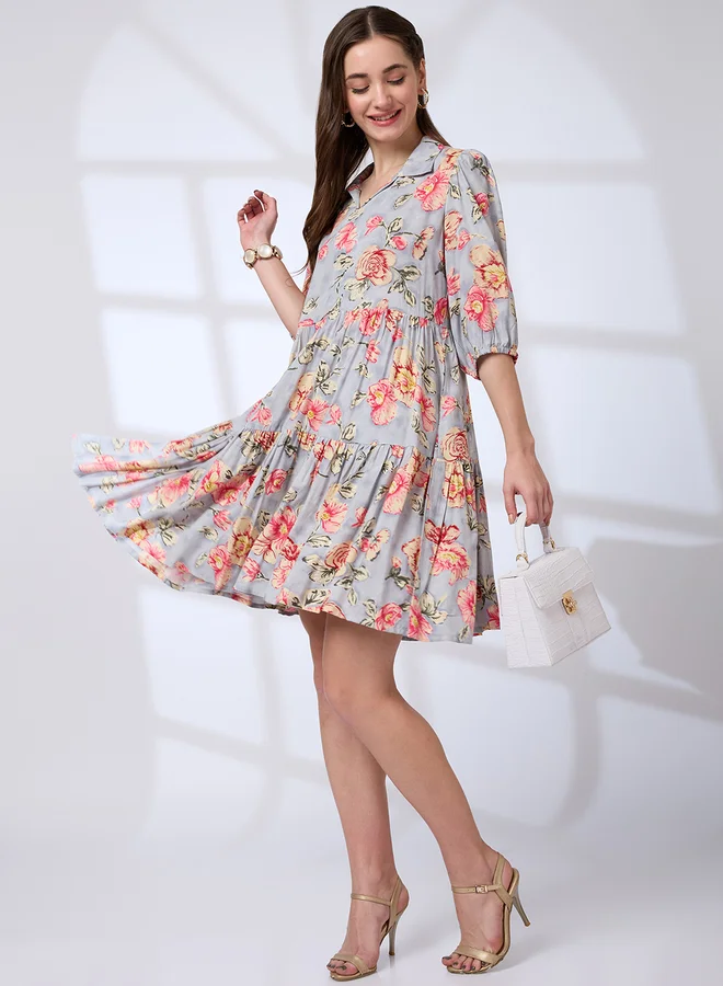 Take Two Floral Printed V-Neck Short Sleeve Maxi Dress