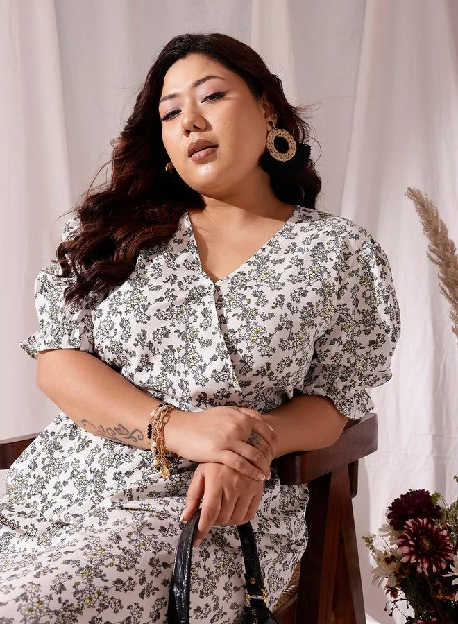 Tokyo Talkies All-Over Floral Print Puff Sleeve Midi Dress