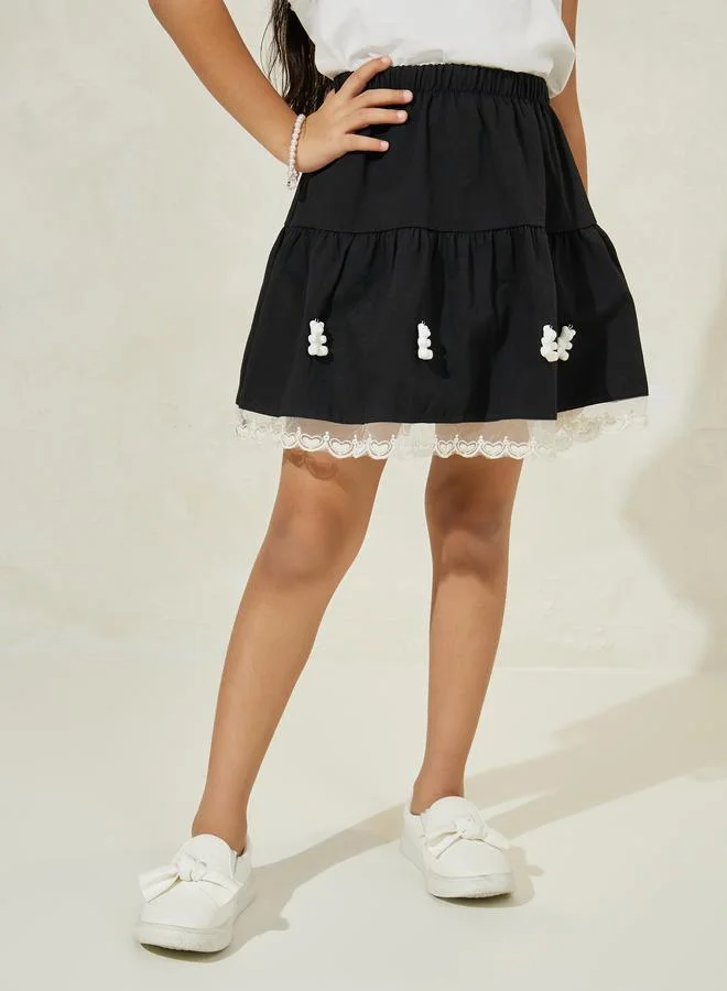 Faux Pearl Embellished Hem A-Line Maxi Skirt
