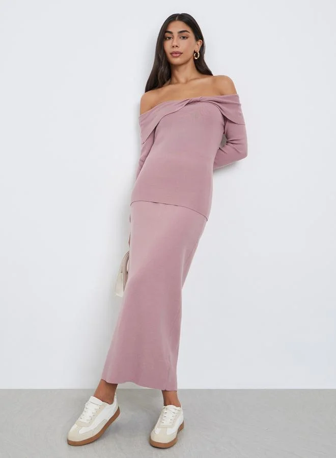 Styli Pink Plain Maxi A-Line Sweater Skirt